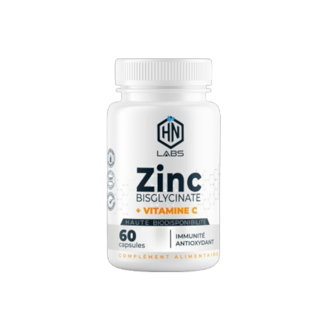 Boostez votre immunité et récupération avec le Zinc Bisglycinate + Vitamine C HN Labs. 60 capsules hautement biodisponibles, formulées en Tunisie pour les sportifs exigeants. Commandez maintenant !